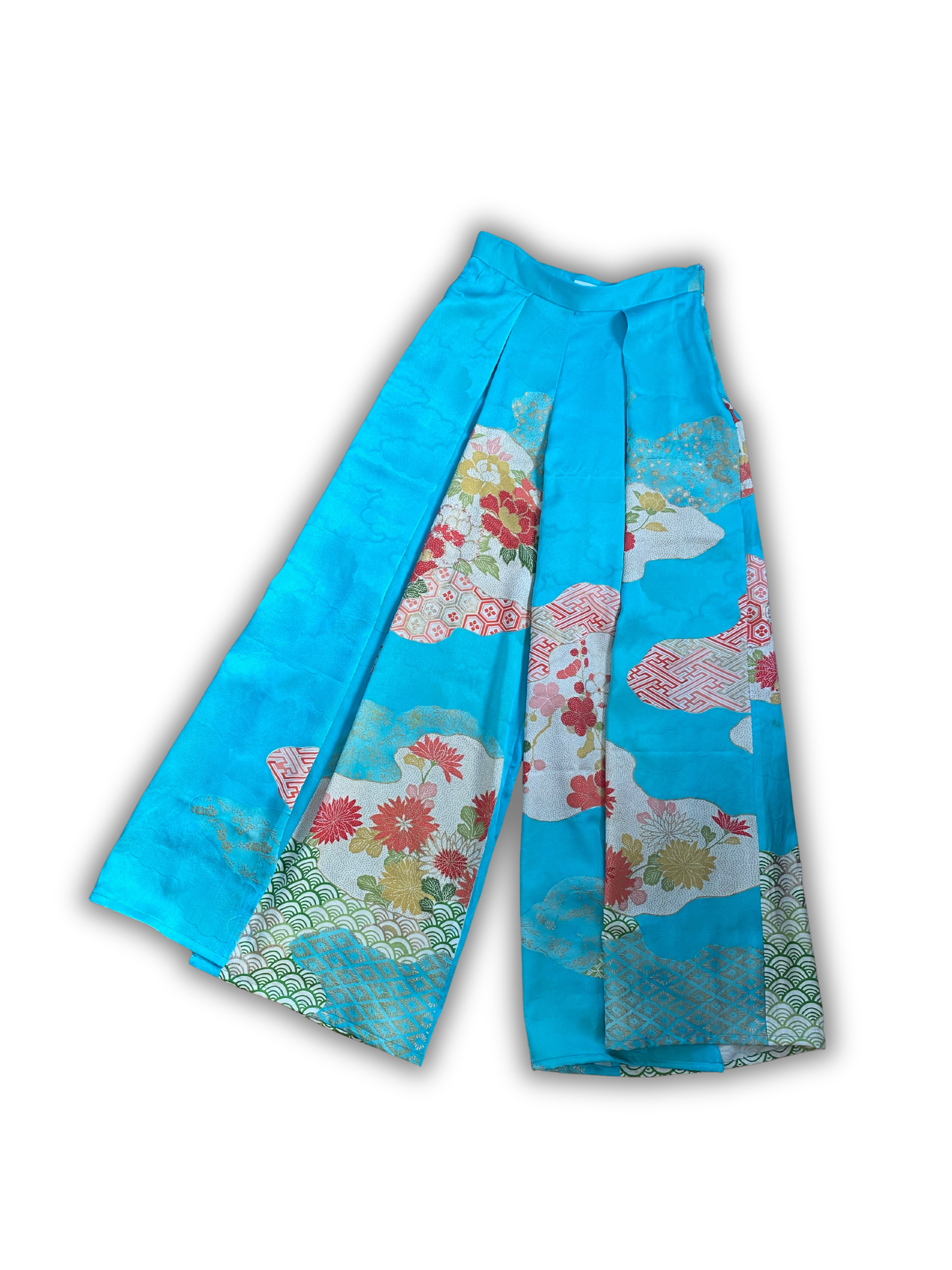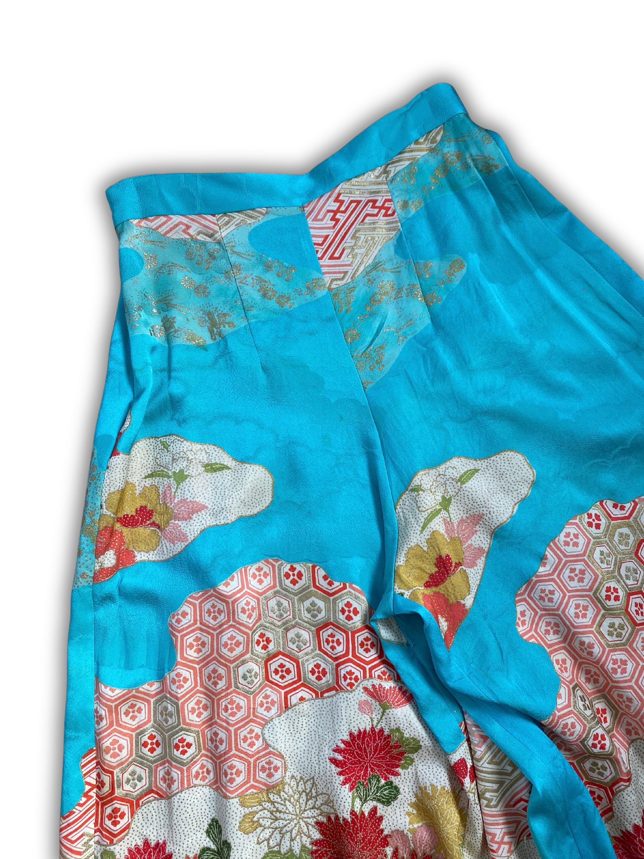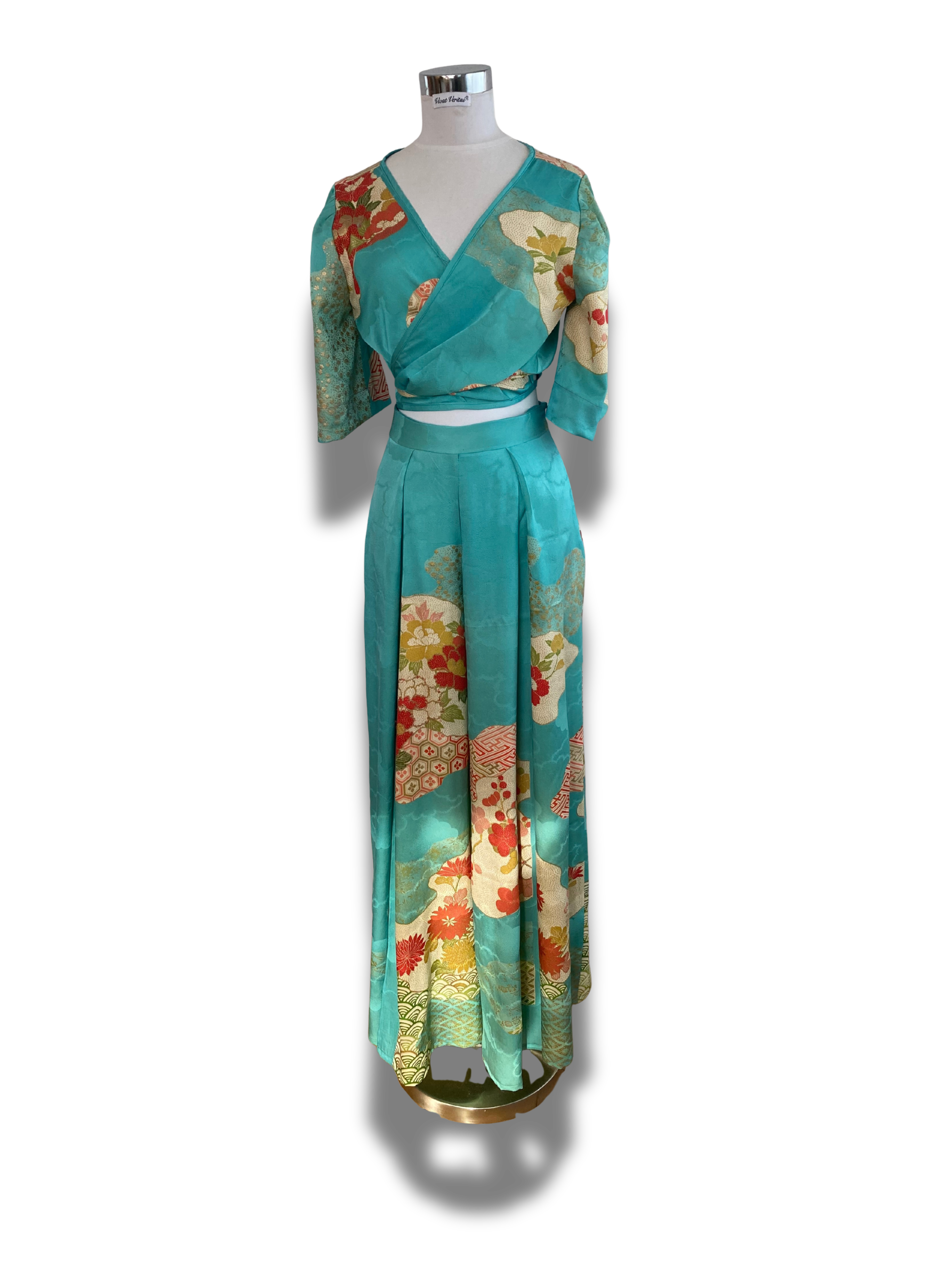 Kimono remake, Modern Japanese fashion, Spring outfit women, Silk blouse, Handmade unique piece, Two-piece set、Party wear, Gift wrapping available, Upcycled kimono, ワイドレッグ、スカートパンツ