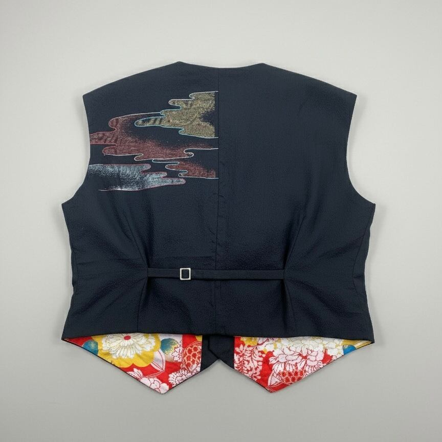 「上質な着物生地に新たな命を吹き込む、少しファニーなメンズベスト」