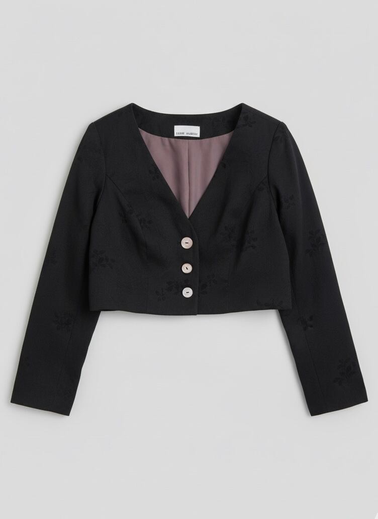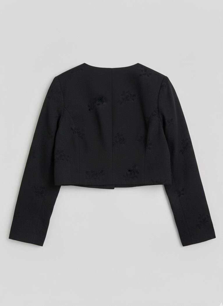 「上質な着物生地に新たな命を吹き込む、モダンでシックなクロップドジャケット」