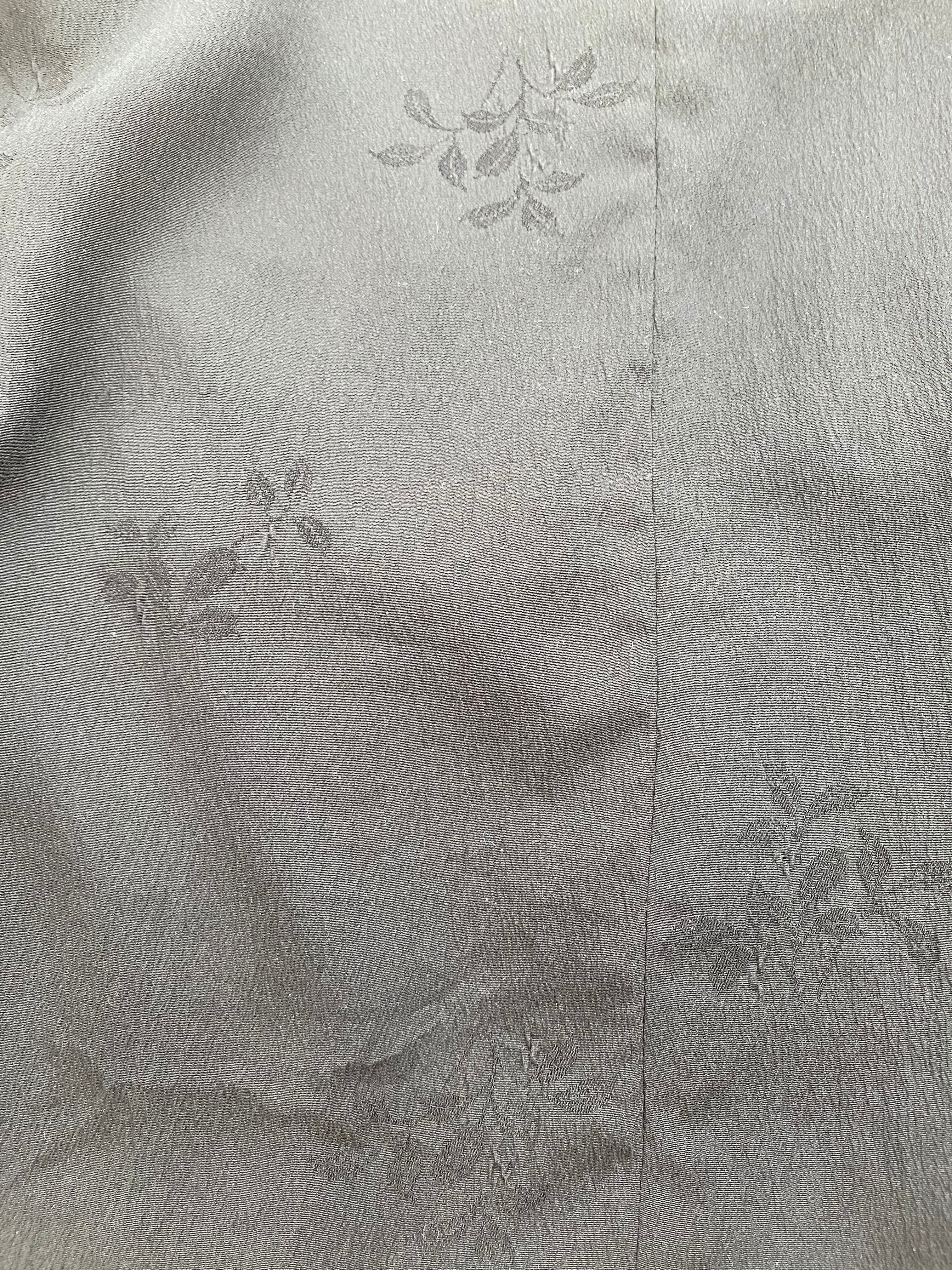■色 ベース: 黒 (ブラック) 柄: 黒の織り柄(花柄) 裏地: くすみグレー(モーヴ系)