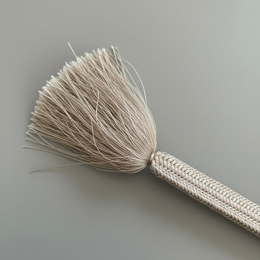 着物や帯のコーディネートを問わず馴染みやすいベージュ組紐を合わせました。