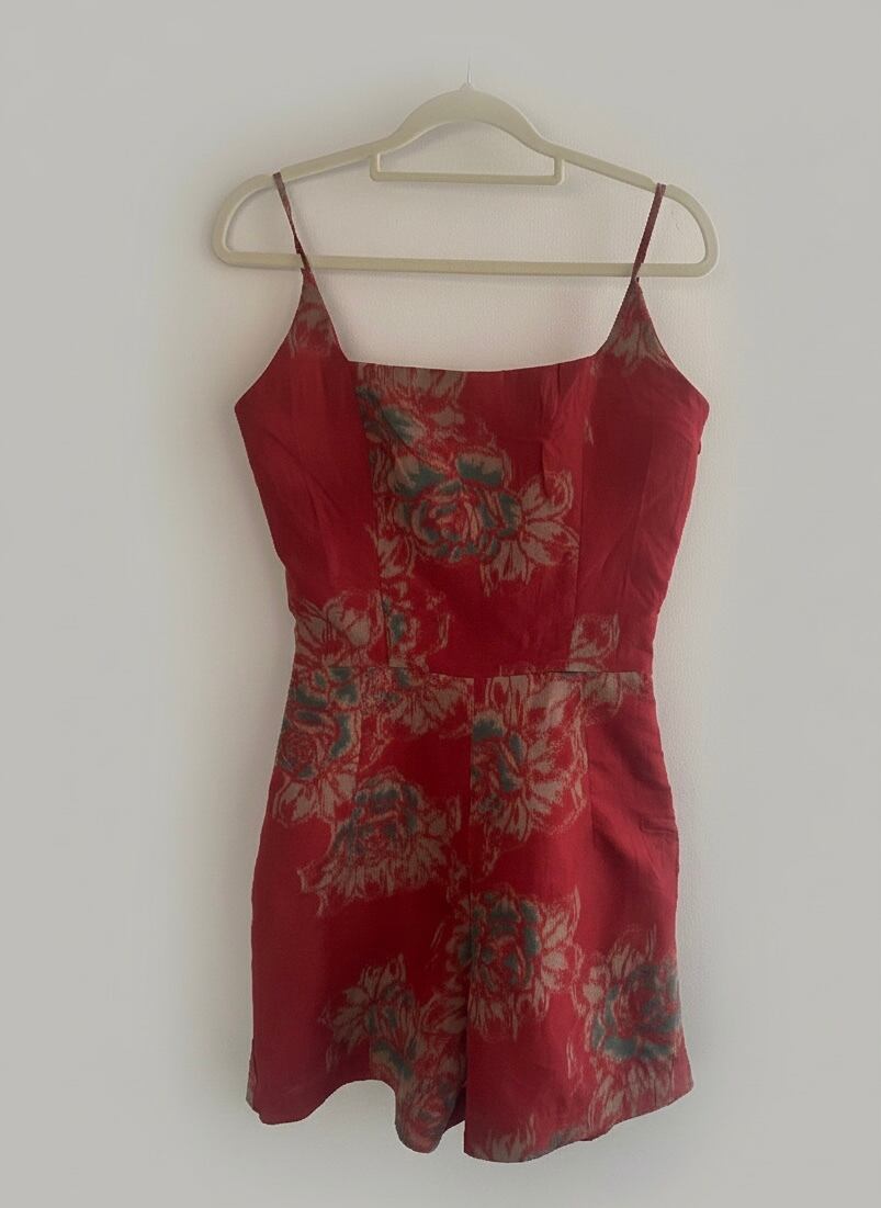 2025 Kimono remake, Meisen, Romper, Jumpsuit, One-of-a-kind, Sustainable, Japanese pattern, Terracotta, Red