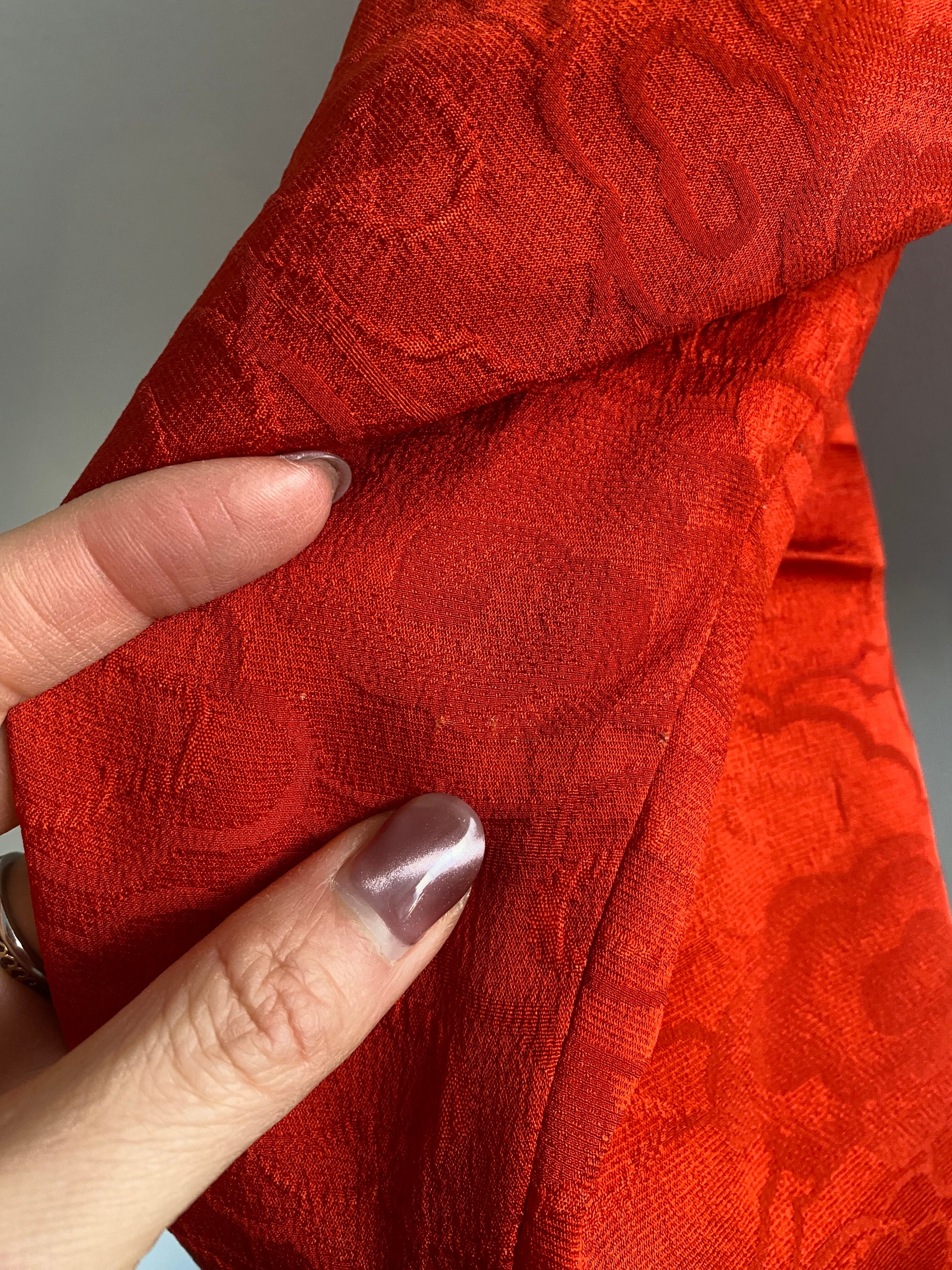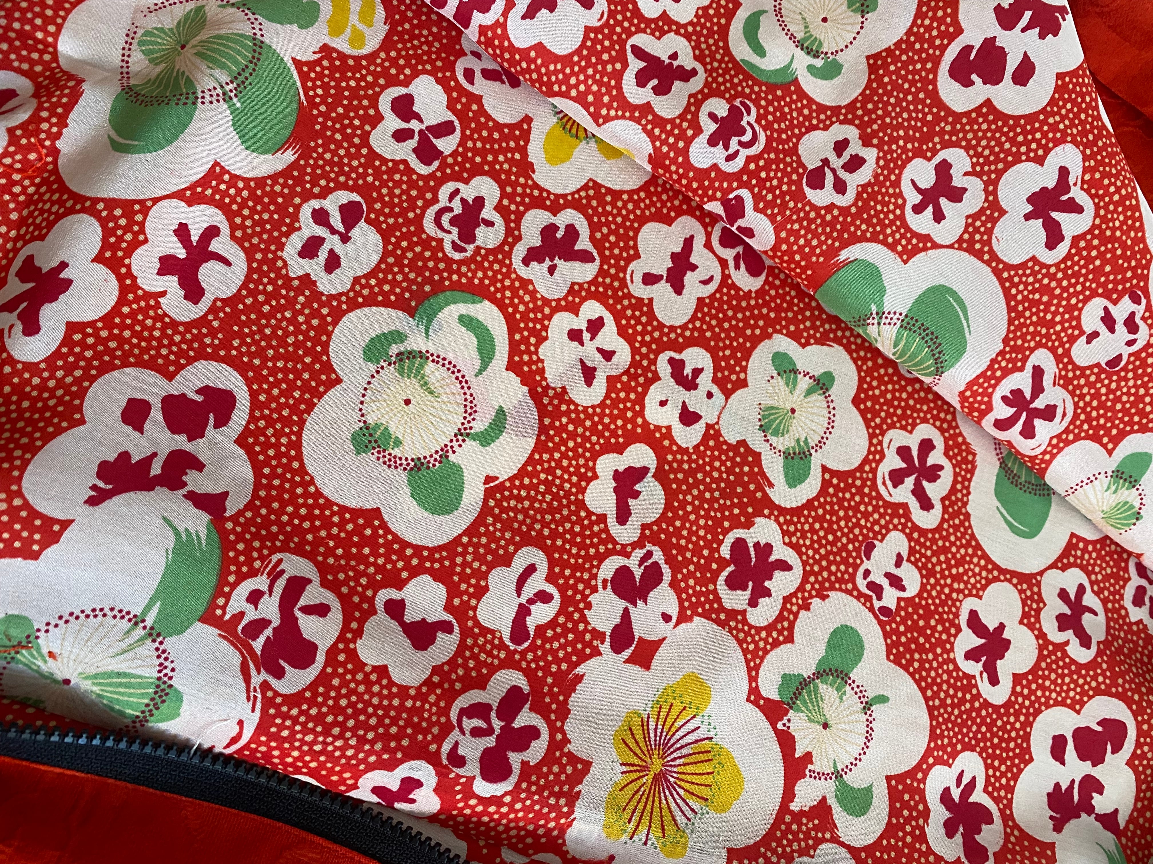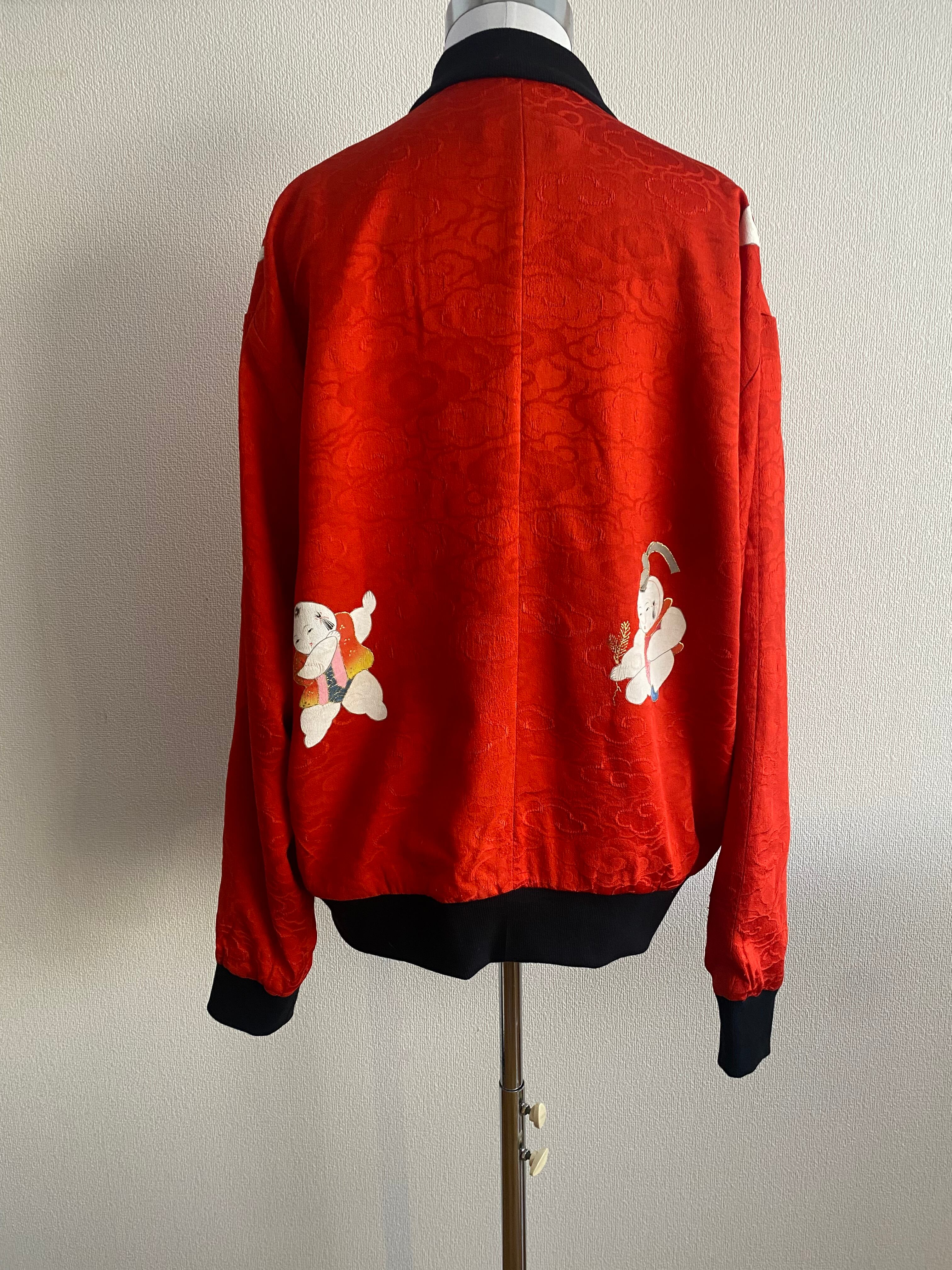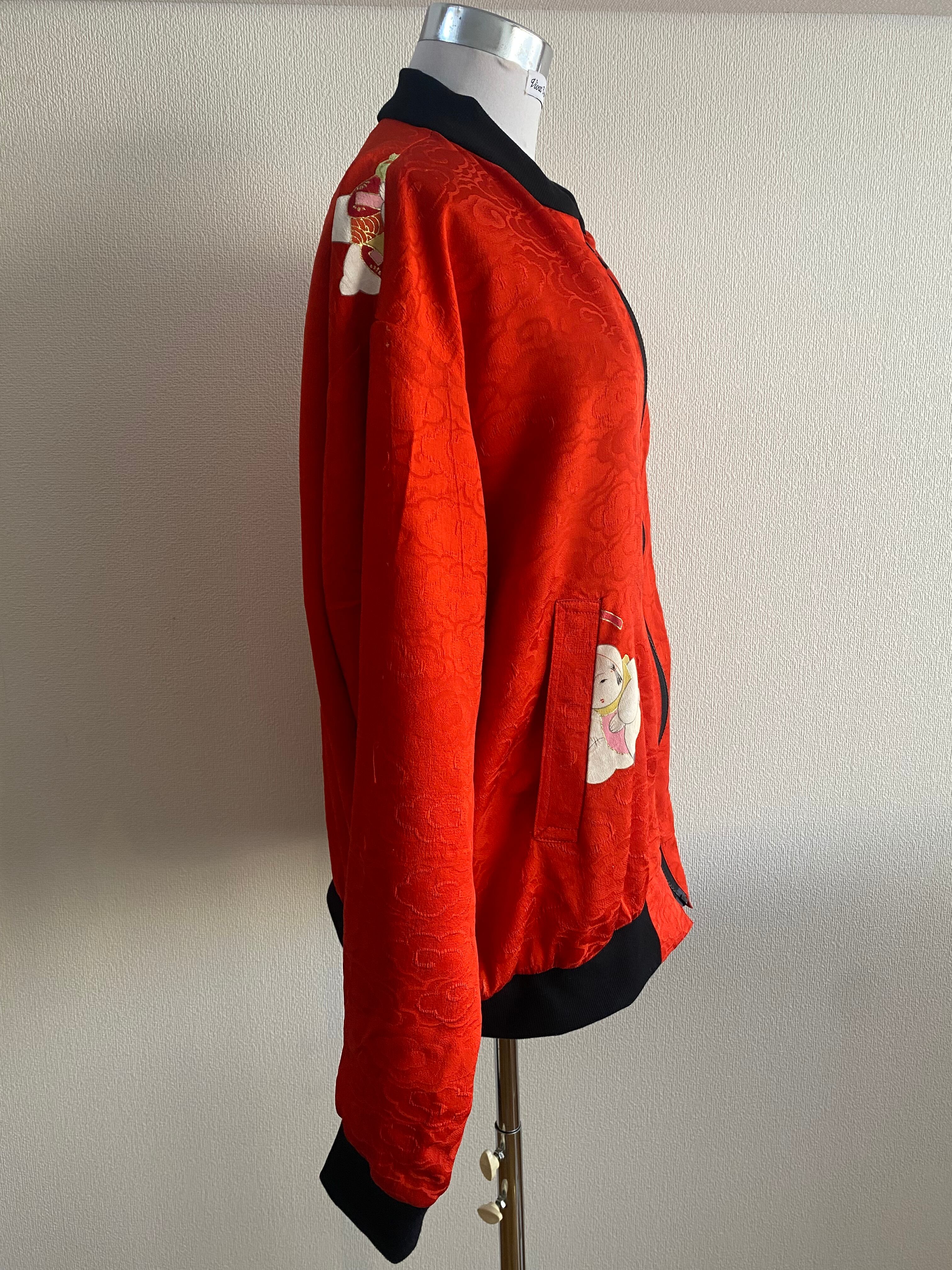 Kimonoremake, Upcycledkimono, Kimonojacket, Souvenirjacket, Sukajan, Bomberjacket, Silkjacket, Japanesestyle, Sustainablefashion, Onerareitem, Red, Silk, MadeinTokyo, VivatVeritas