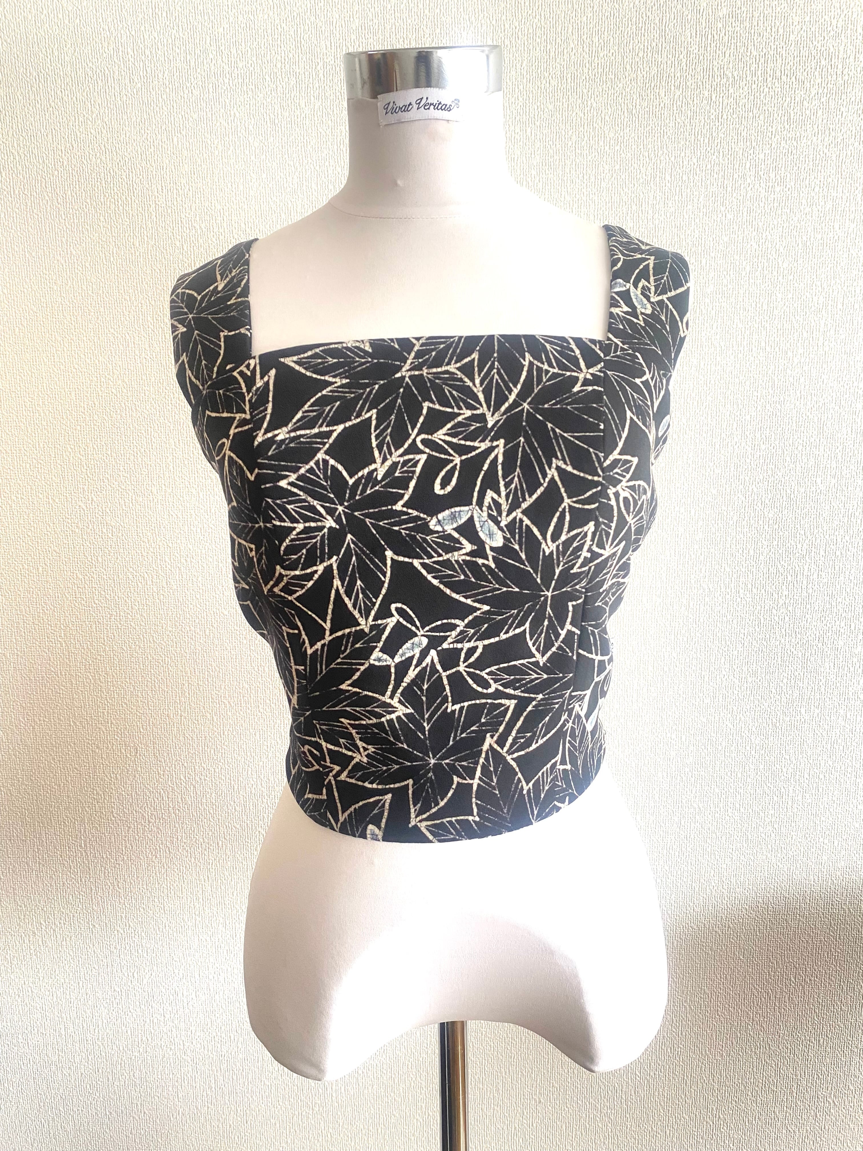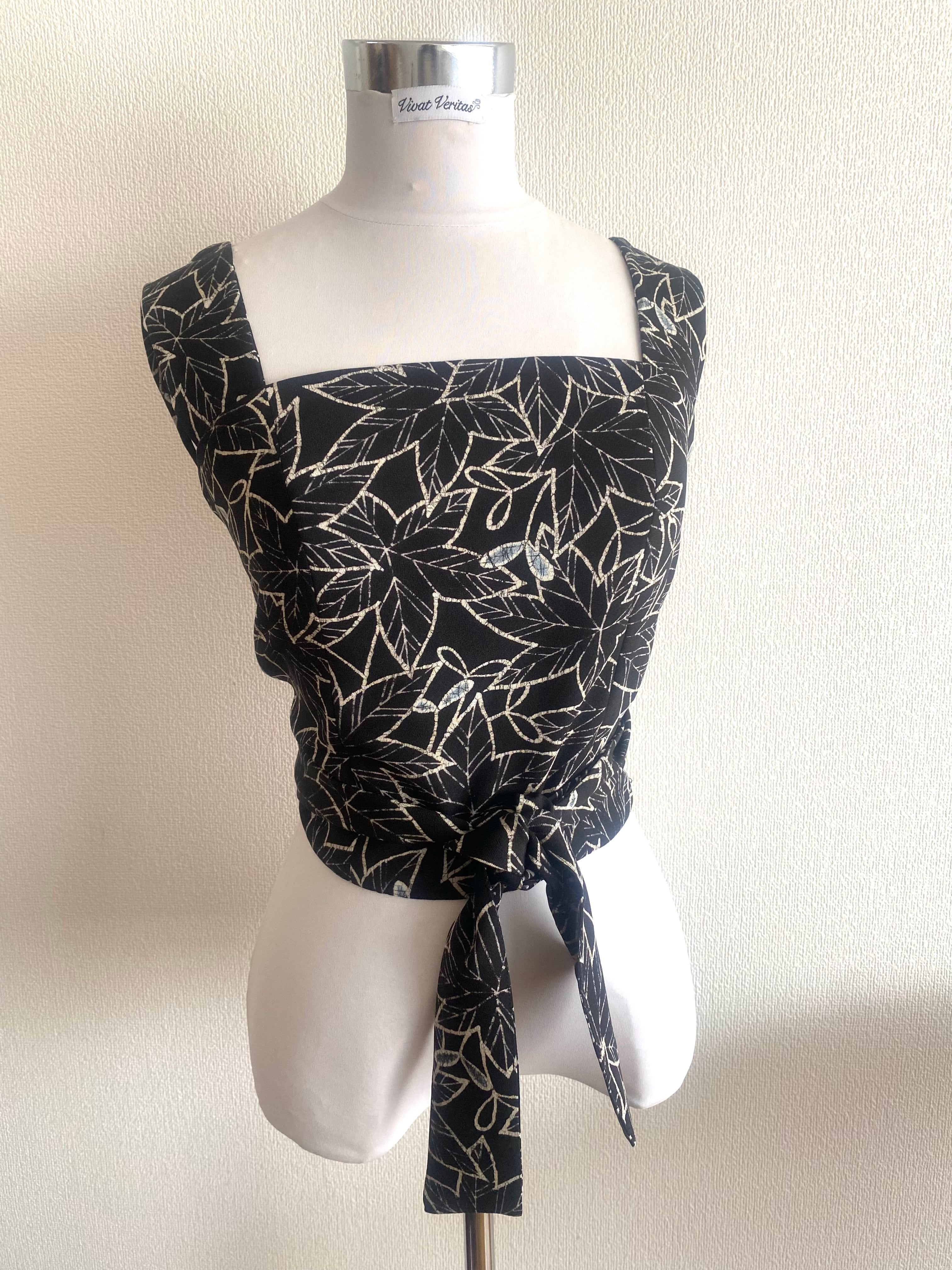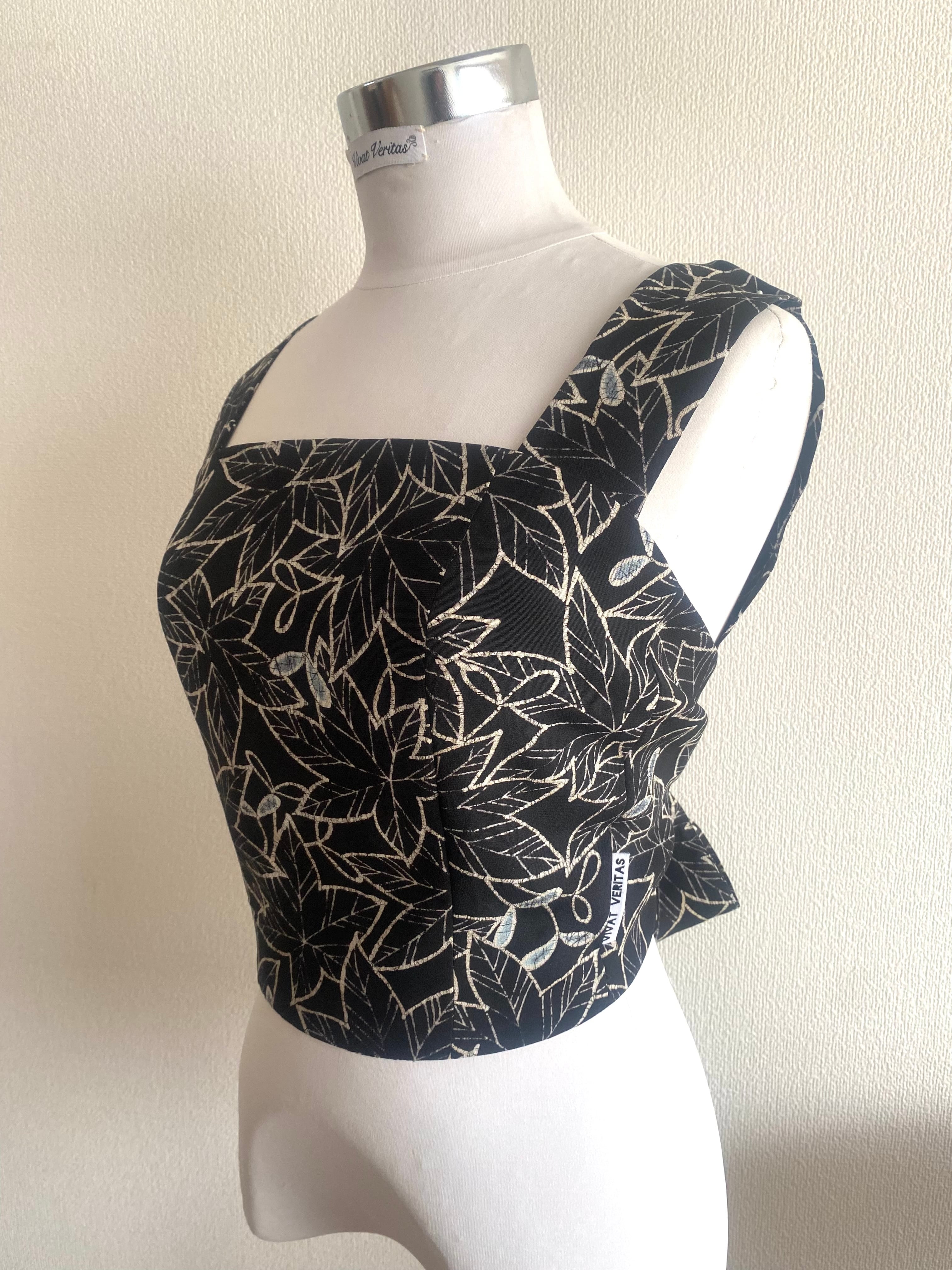 ◆ バックリボントップス ブラック紅葉柄