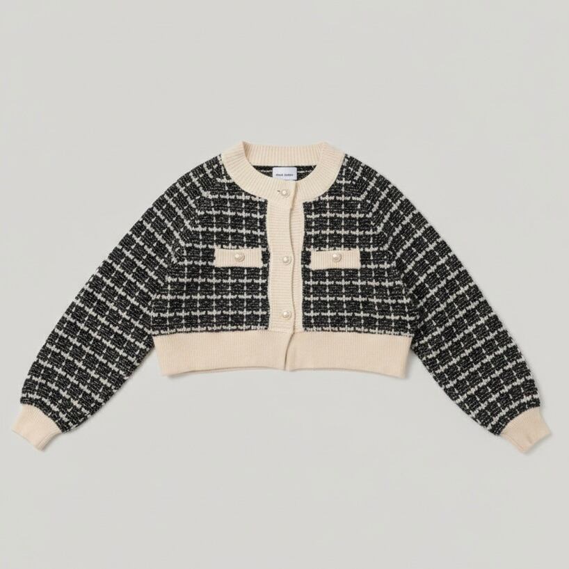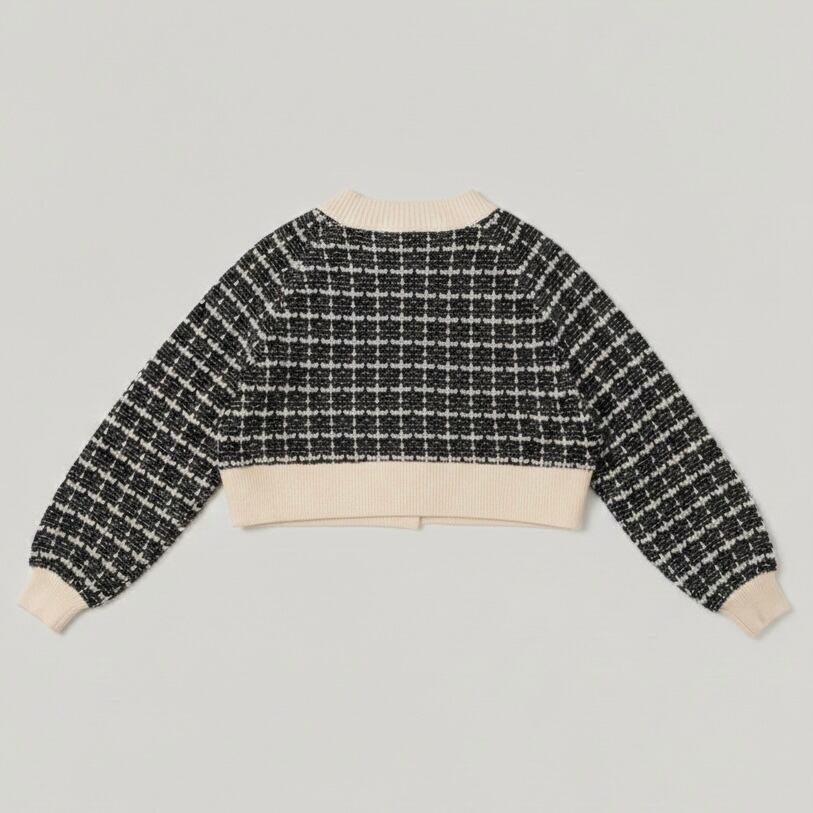 新作2026、カーディガン、ツイード、リメイク、古着リメイク、アップサイクル、クロップド丈、ショート丈、バイカラー、モノトーン、サステナブル、エシカルファッション、一点もの、VivatVeritas、ビバベリタス、Remake、Upcycled、Vintage Remake、Tweed Cardigan、Cropped Jacket、Sustainable Fashion、One of a kind、Handmade Tokyo