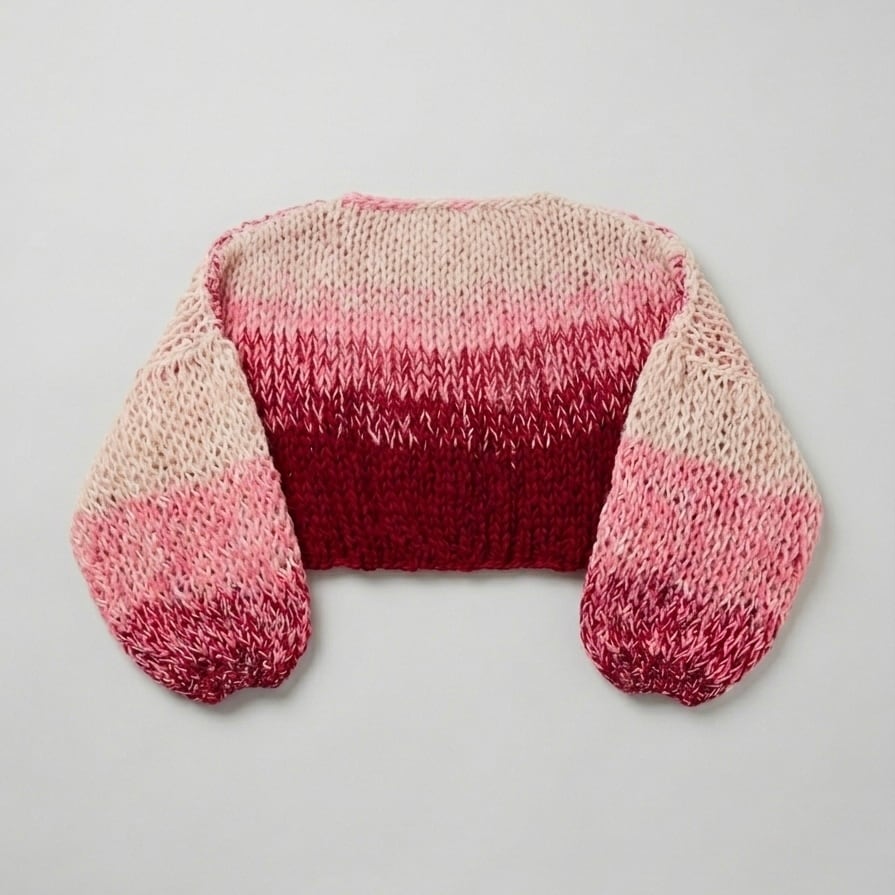 Handmade knit, Chunky knit, Pink gradient, Strawberry milk color, Cropped sweater, Low gauge knit, One of a kind, Volume sleeve, Sustainable fashion, Tokyo made, VivatVeritas, 2025 winter