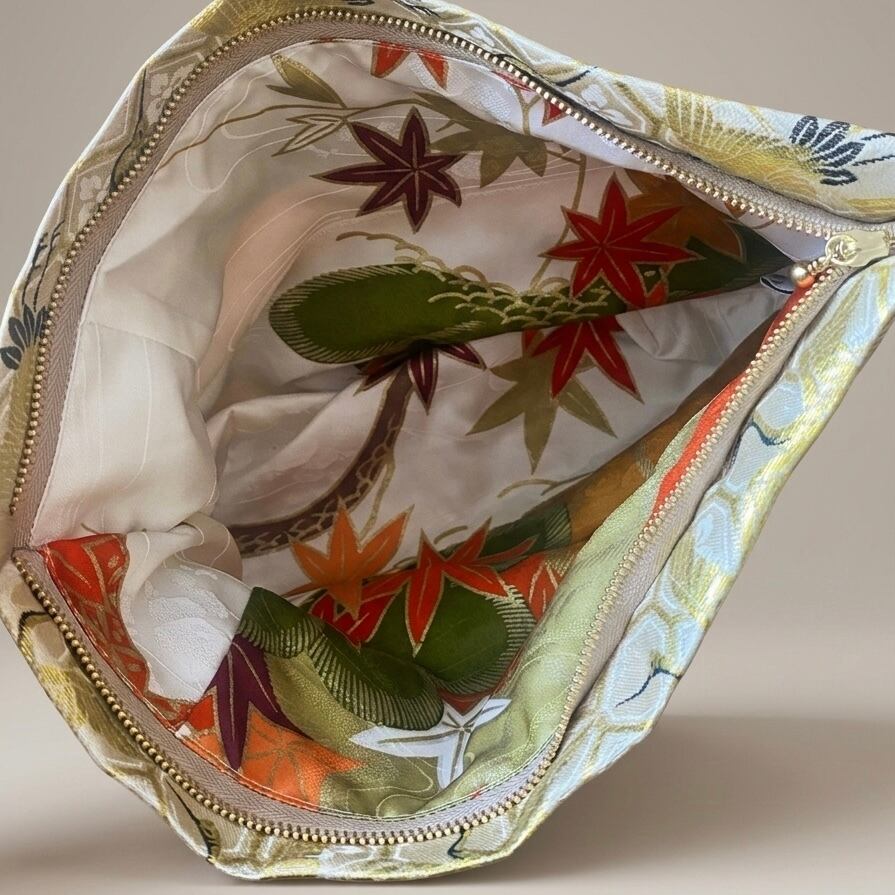 着物リメイク、帯リメイク、ポーチ、クラッチバッグ、サコッシュ、ショルダーバッグ、和装小物、正絹、シルク、鶴、紅葉、伝統工芸、サステイナブル、一点もの、プレゼント、ギフト、VivatVeritas、ビバベリタス