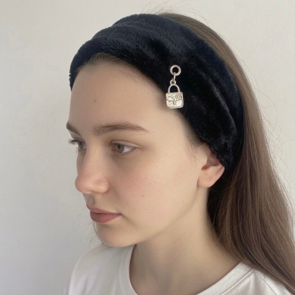Headband, Alice band, Velvet, Velour, Upcycled, Vintage, Remake, Heart charm, Ribbon, Black, Sustainable fashion, Handmade, One of a kind, Tokyo