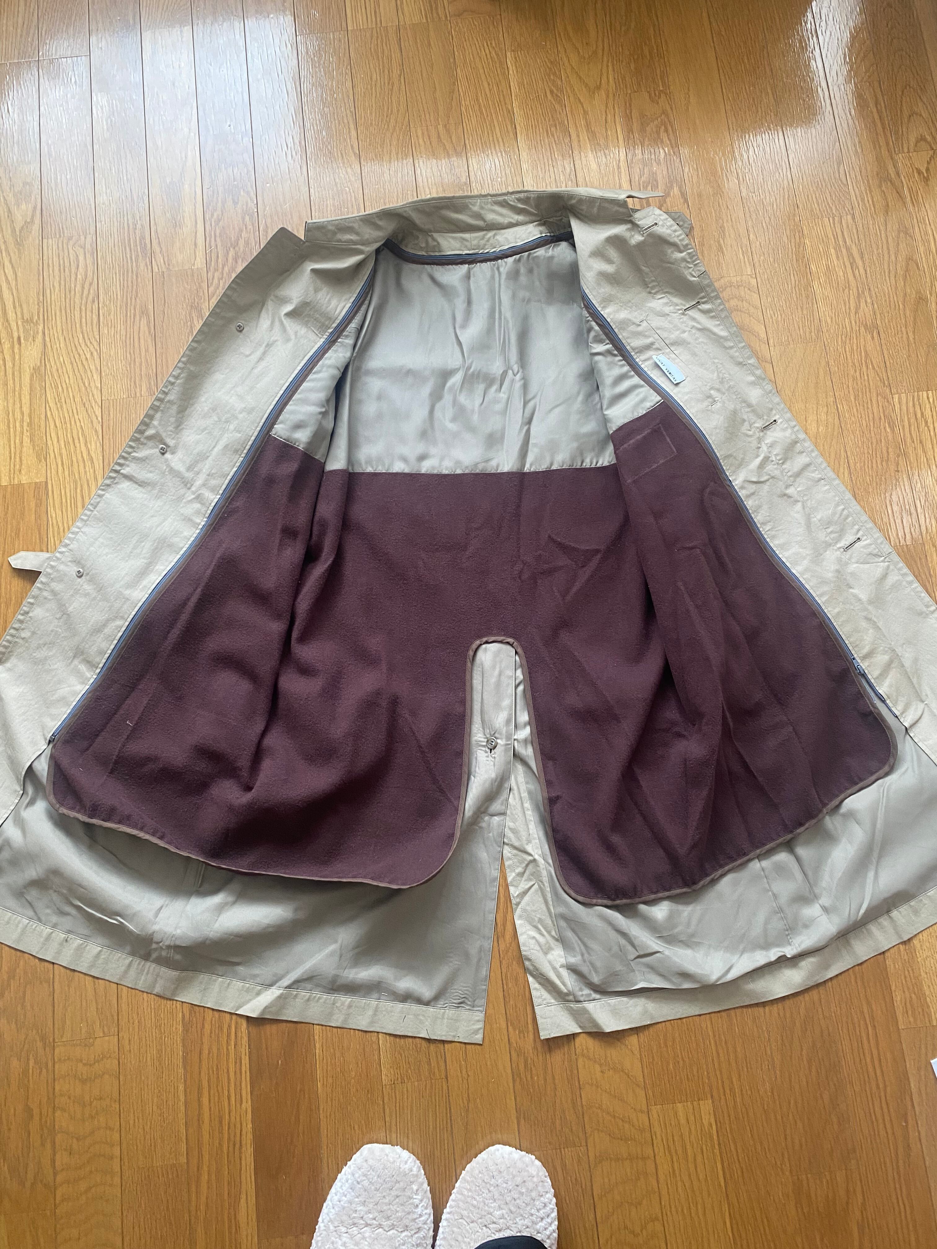 着物リメイク、帯リメイク、トレンチコート、スプリングコート、ロングコート、刺繍、花柄、和モダン、アップサイクル、サステイナブル、一点もの、ヴィンテージ、エシカルファッション、ベージュ、和風、VivatVeritas、ビバベリタス、ハンドメイド