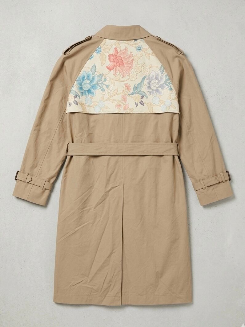 背中に物語を纏う、ヴィンテージ帯のトレンチコート