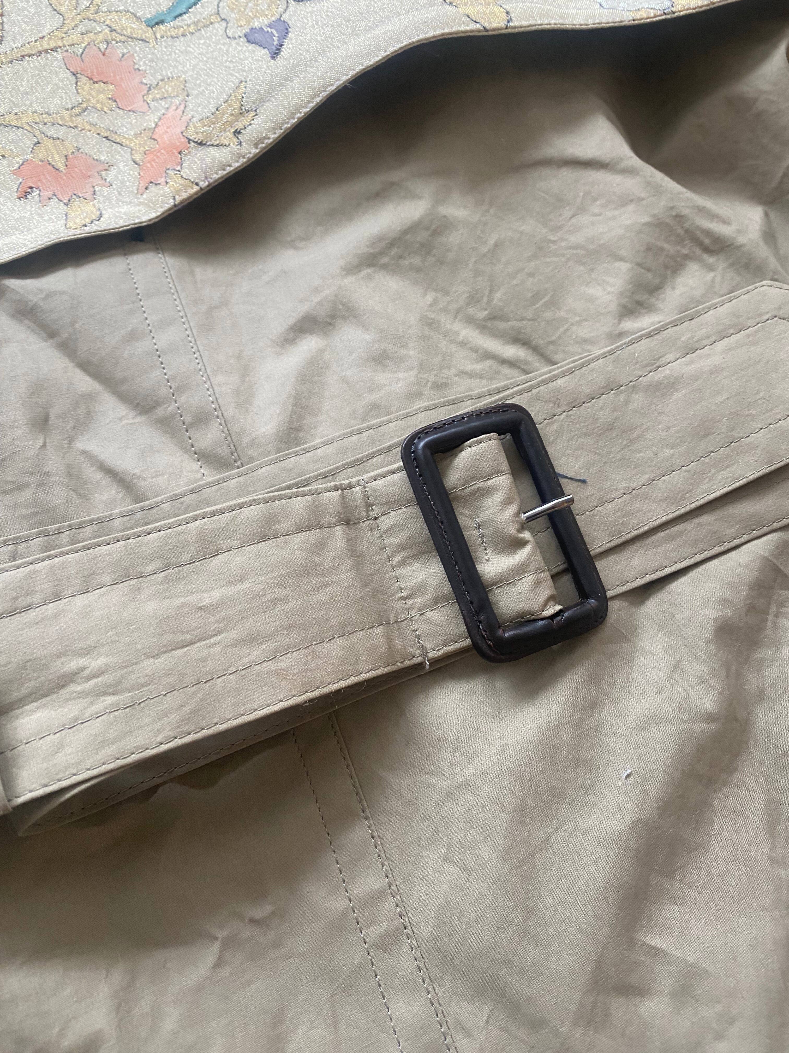Kimono remake, Obi remake, Trench coat, Embroidery, Floral, Japanese modern, Upcycled, Sustainable, One of a kind, Vintage, Ethical fashion, Beige, Japanese style, Vivat Veritas