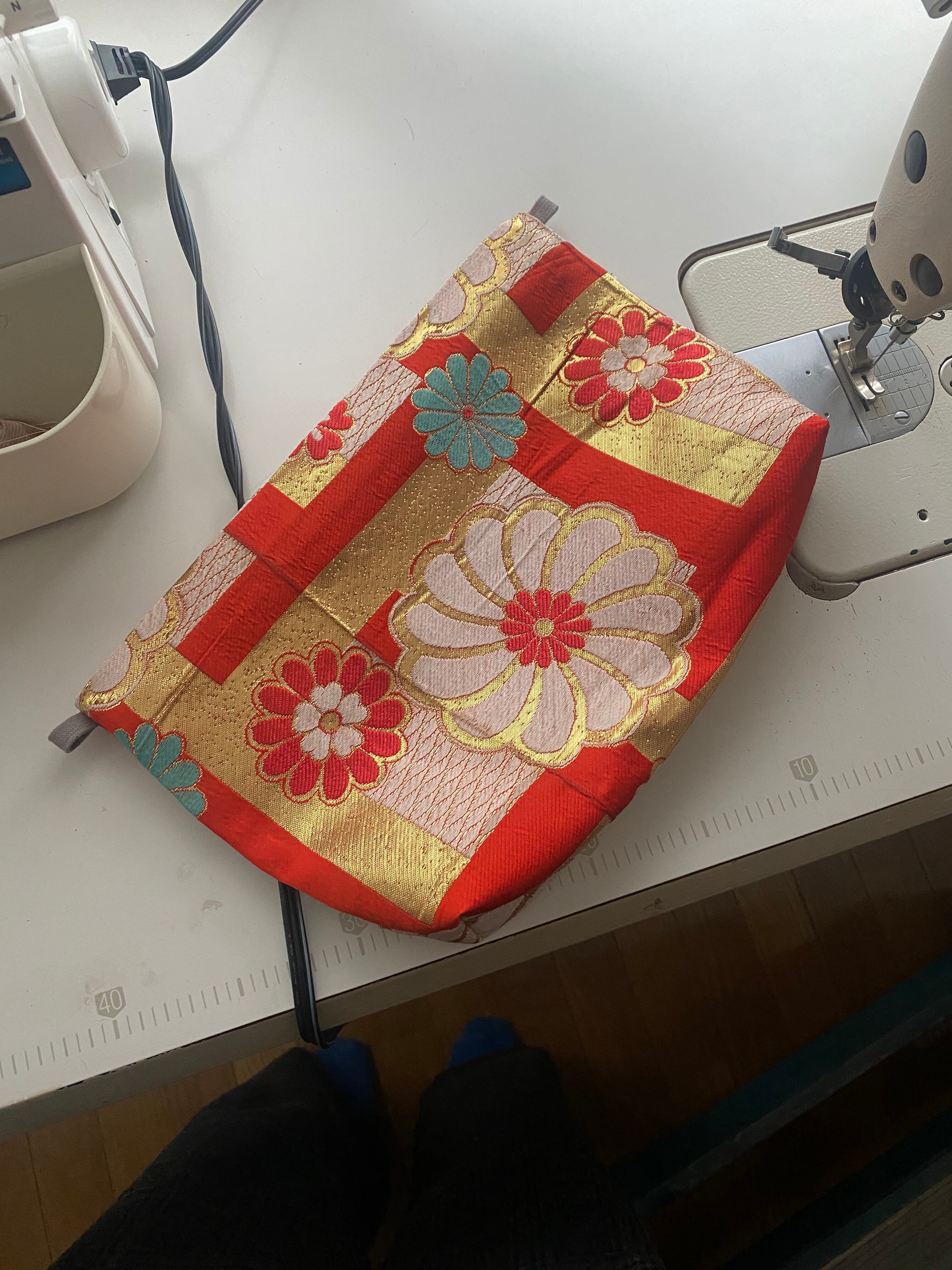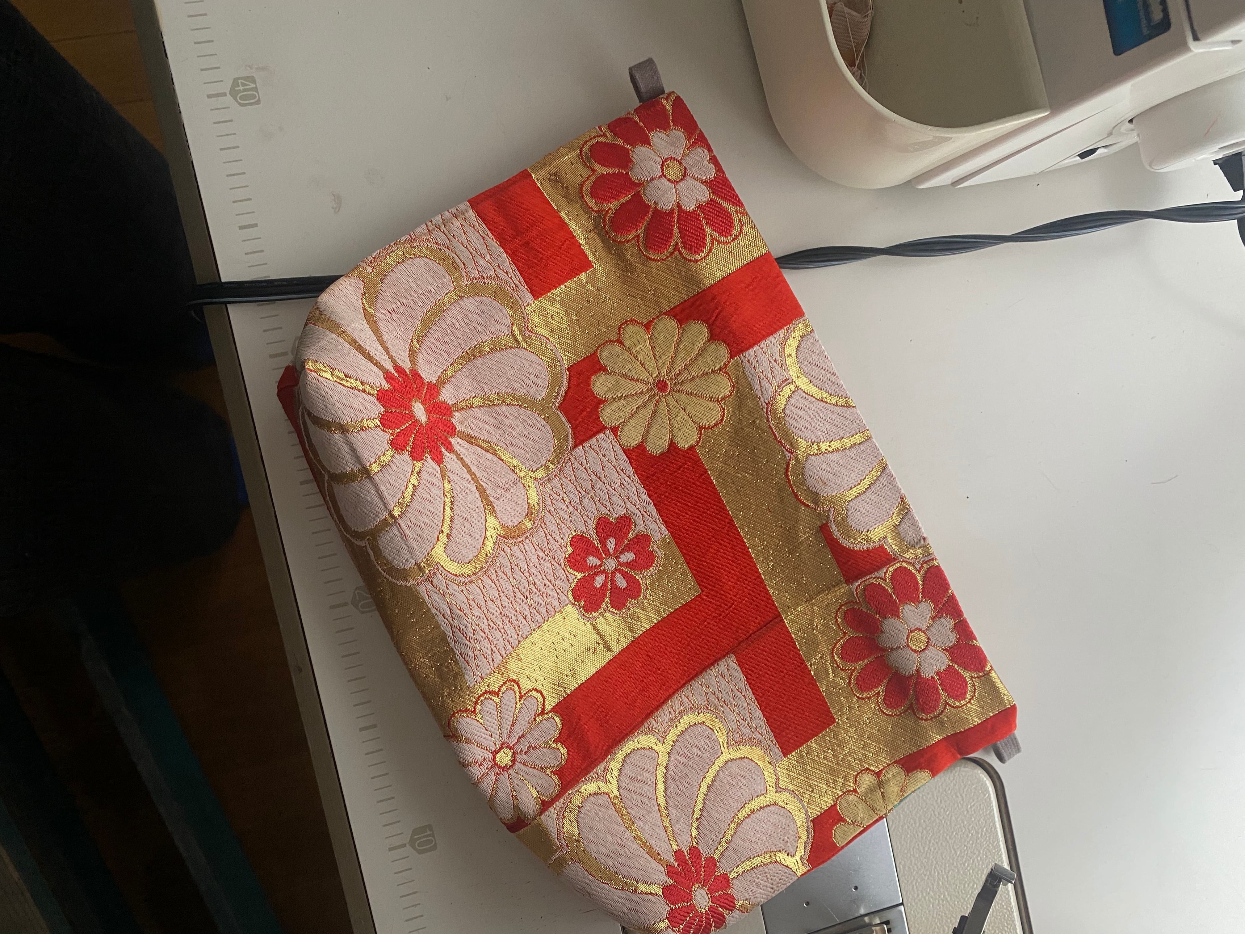 New item 2025, Obi remake, Clutch bag, Shoulder bag, Pouch, Kimono bag, Sustainable fashion, One of a kind, Handmade, Red, Gold, Chrysanthemum, Japanese vintage, Vivat Veritas