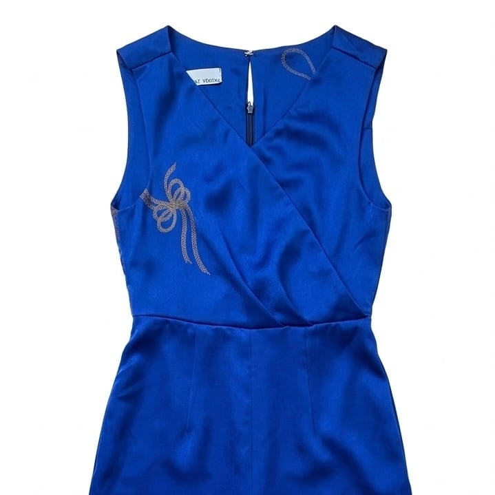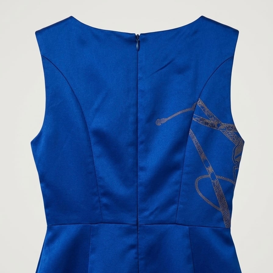 着物リメイク、ジャンプスーツ、ワイドパンツ、オールインワン、ロイヤルブルー、金彩、吉祥文様、熨斗文様、シルク、正絹、一点もの、ハンドメイド、サステイナブルファッション、エコファッション、和モダン、着物アップサイクル、VivatVeritas、ビバベリタス、カシュクール、パーティードレス、観劇、2026新作