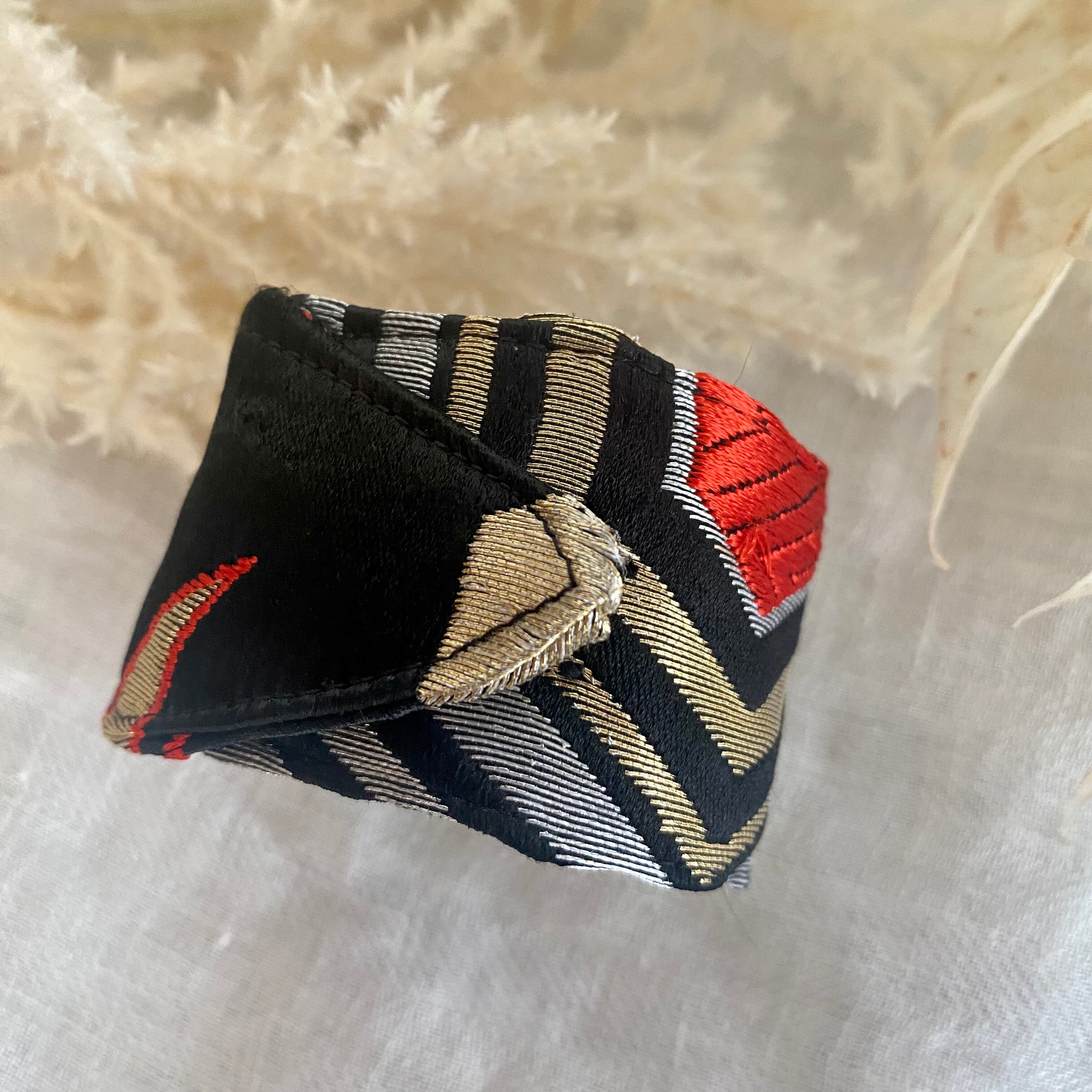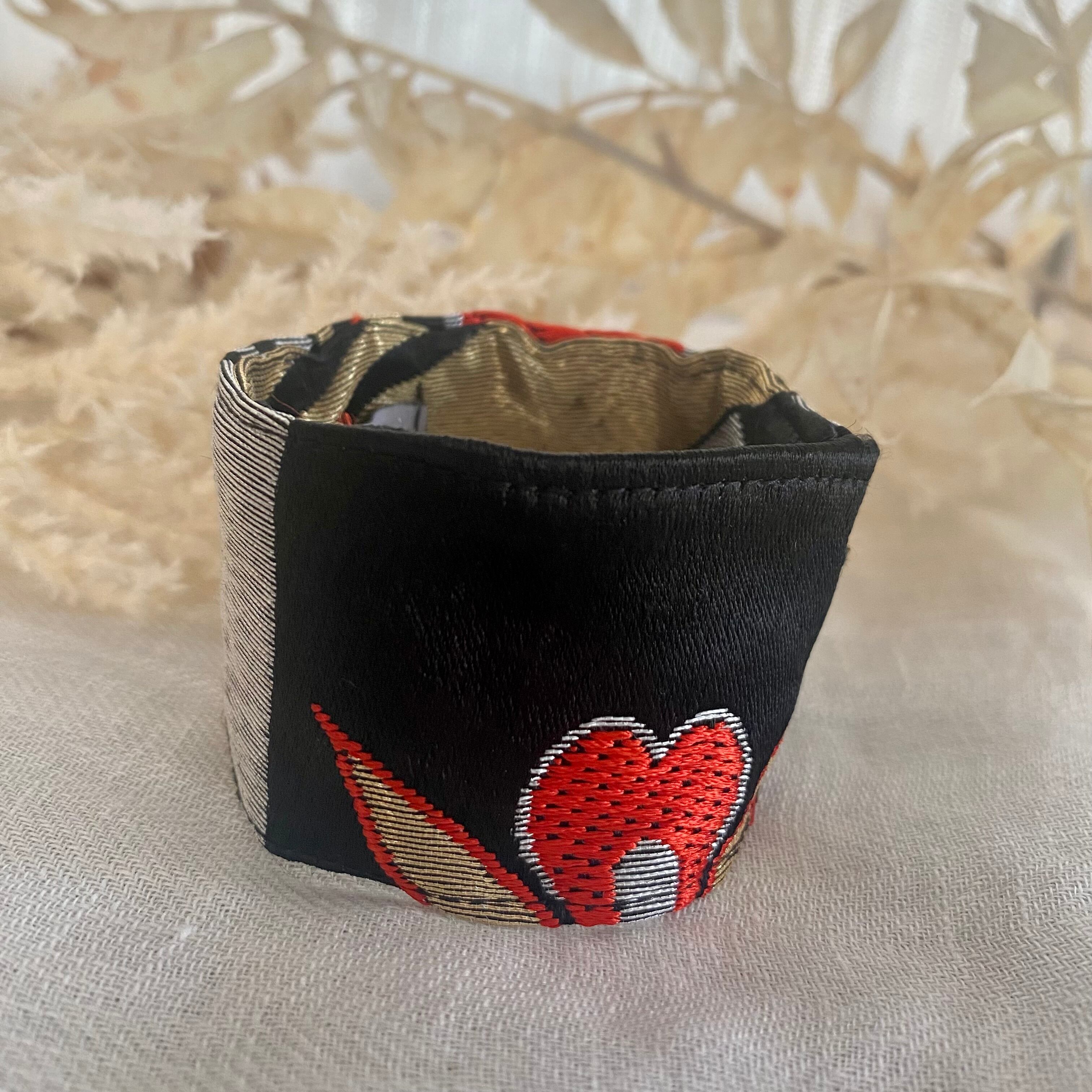 かっこいい雰囲気の正絹帯をバングルブレスレットにリメイクしました。