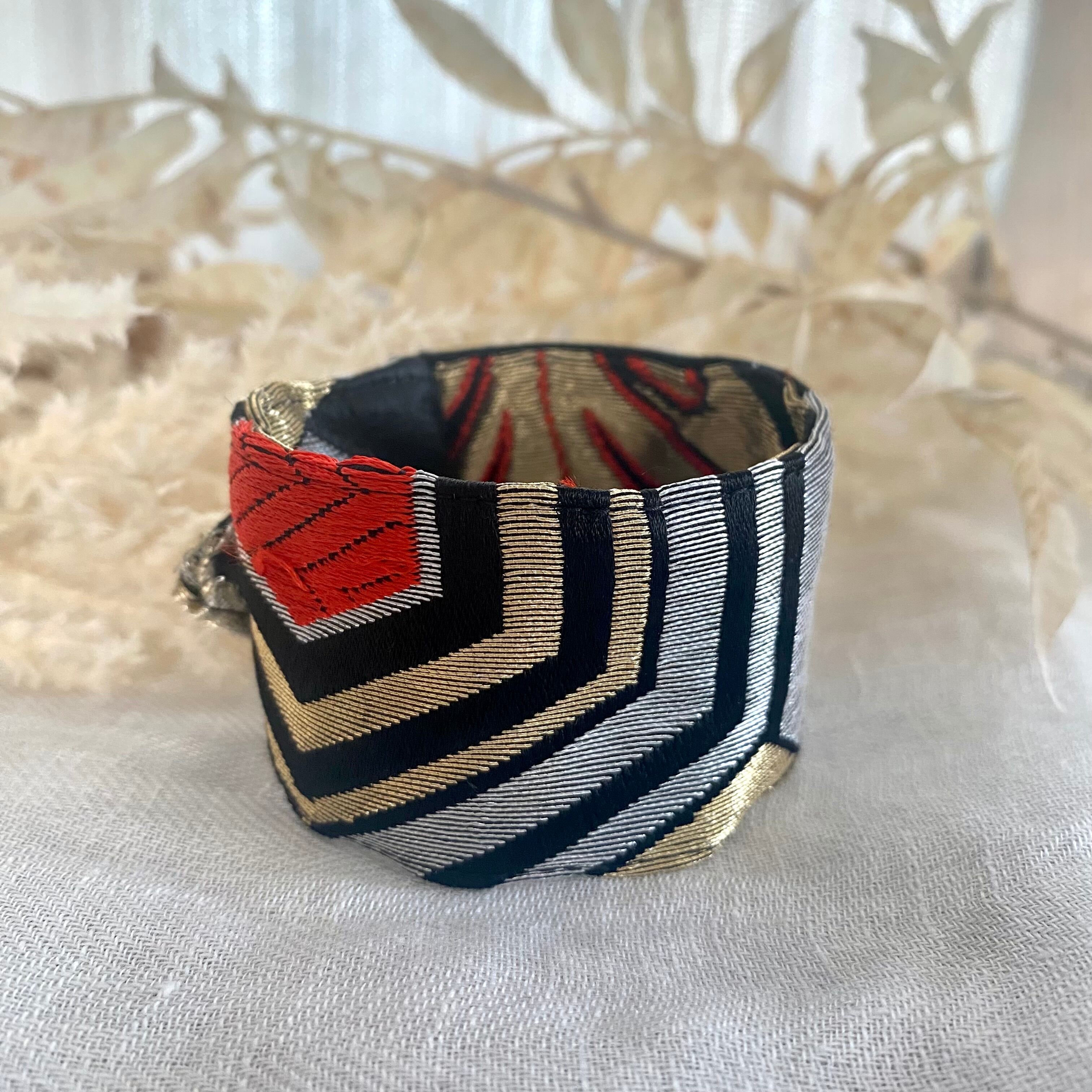 新作2023、帯リメイク、Vivat Veritas、ビバ ベリタス、エコ、サステイナブル、日本風、和風、プレゼント、5,000円以下プレゼント、ブレスレット、腕輪、ばんぐる、バングル、幅広、幅太、日本土産、帯バングル