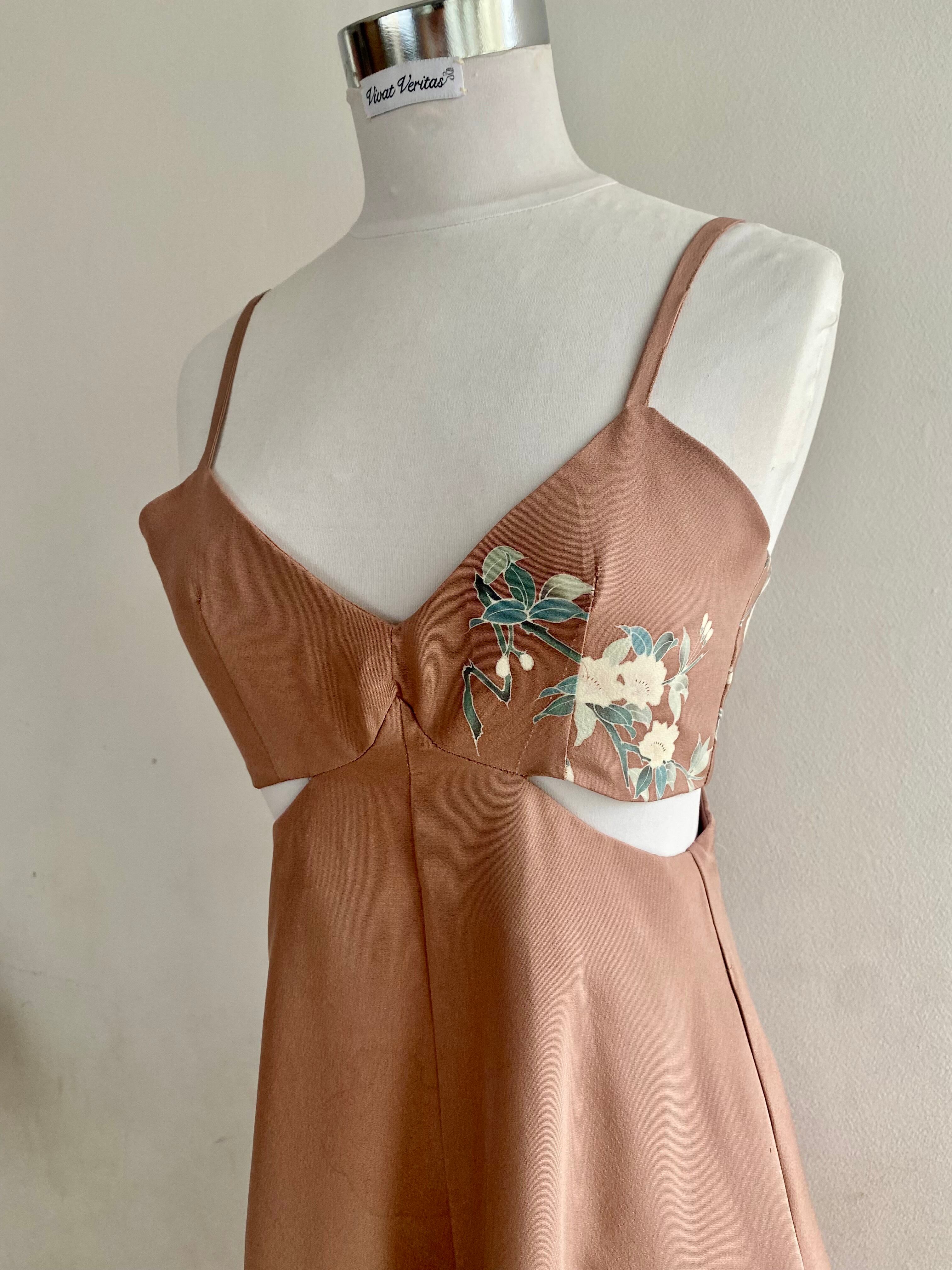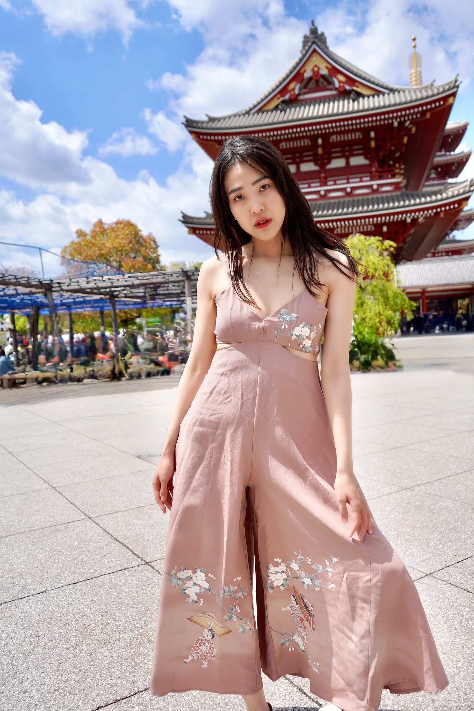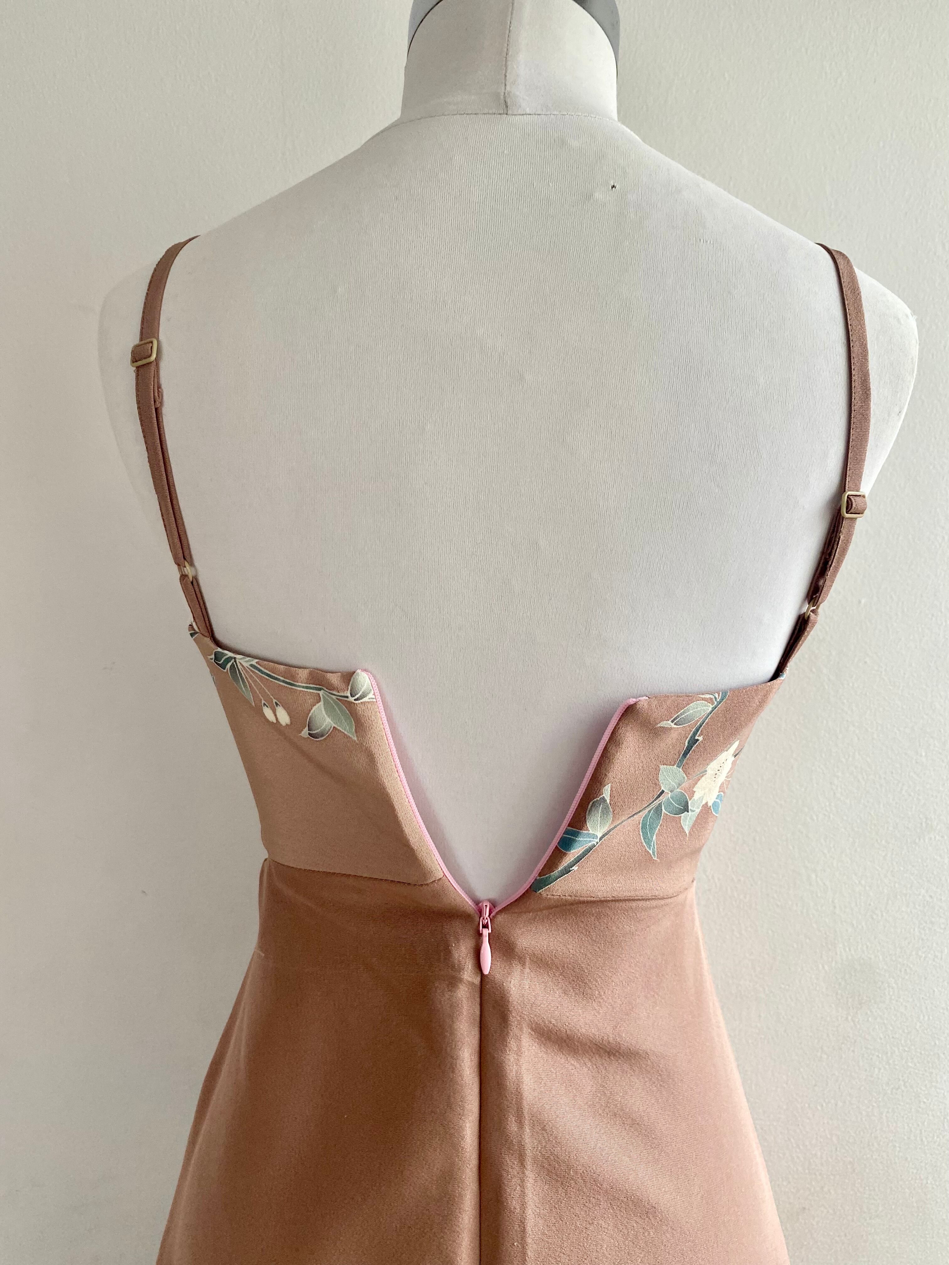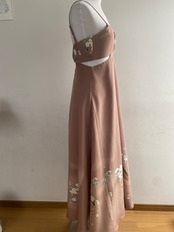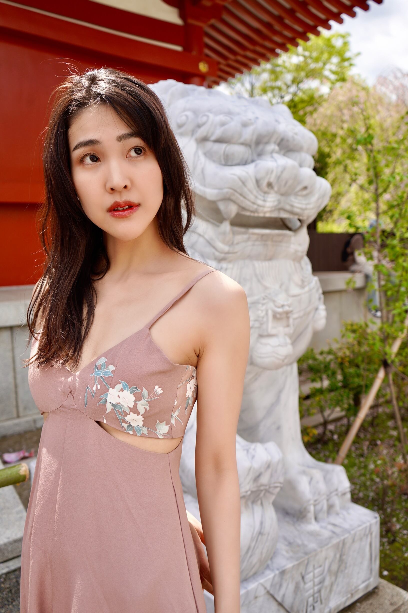 お呼ばれドレス、リボン、パーティー、日本風、Japanese、Kimono、着物、やっこさん、モダン着物、リメイク、シンプル、膝下丈、Aライン、パステル、さわやか、ストラップ、キャミソール、ストラップ調整可能