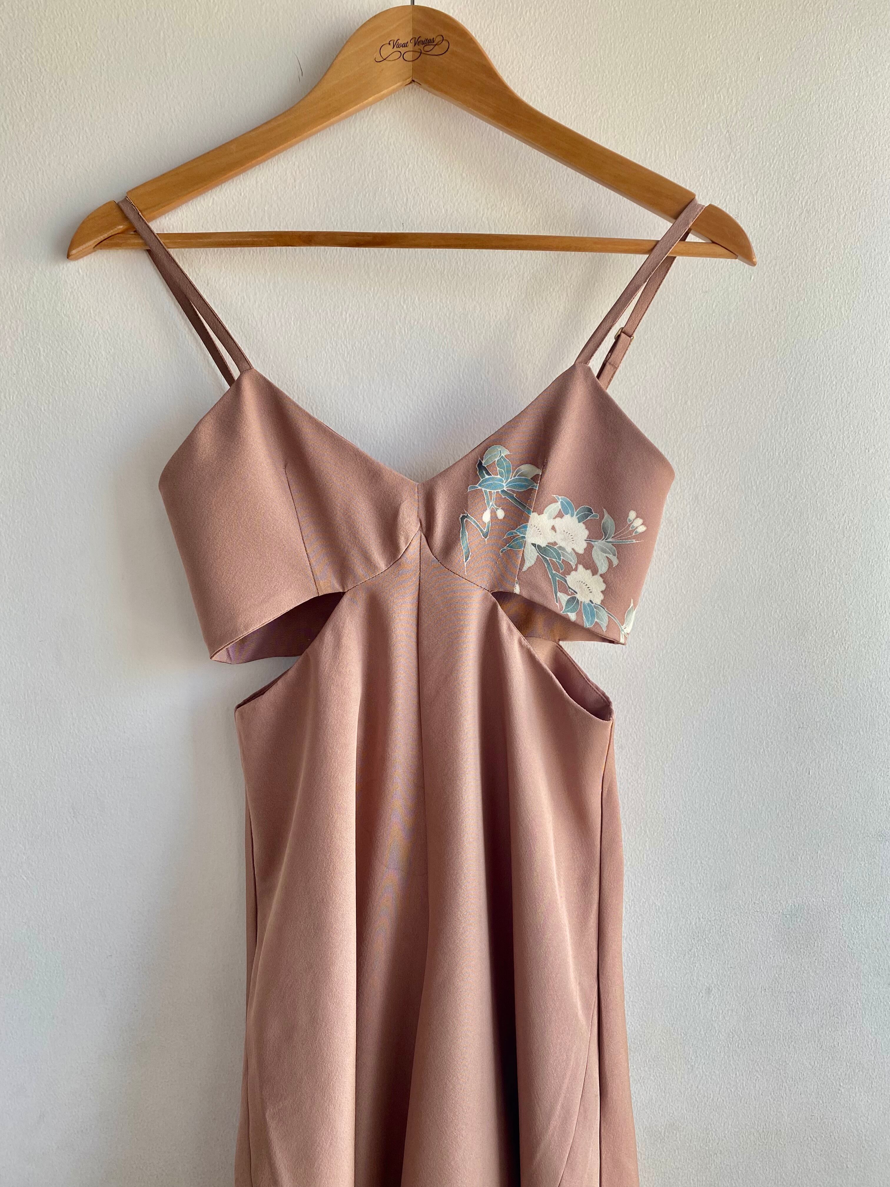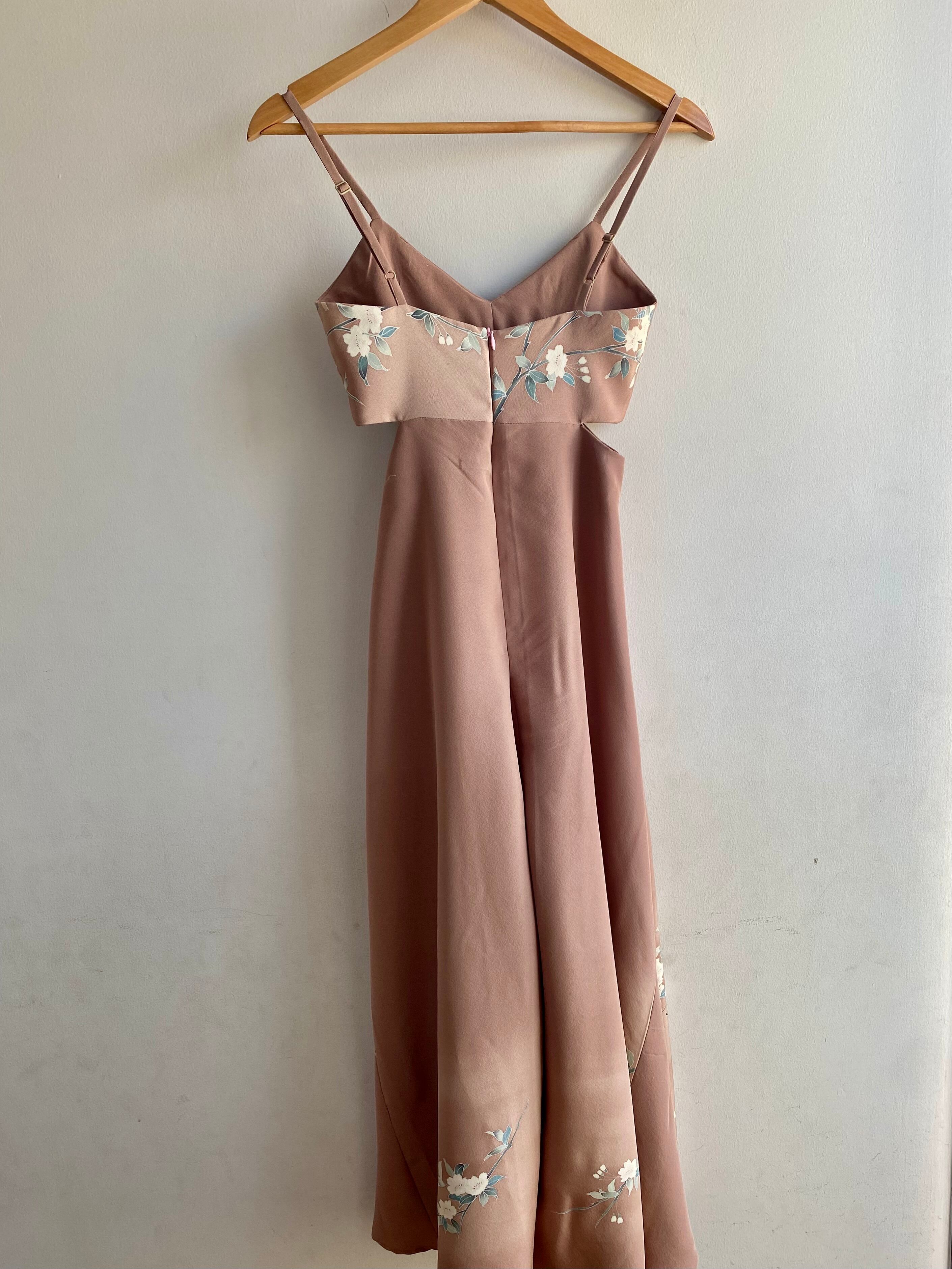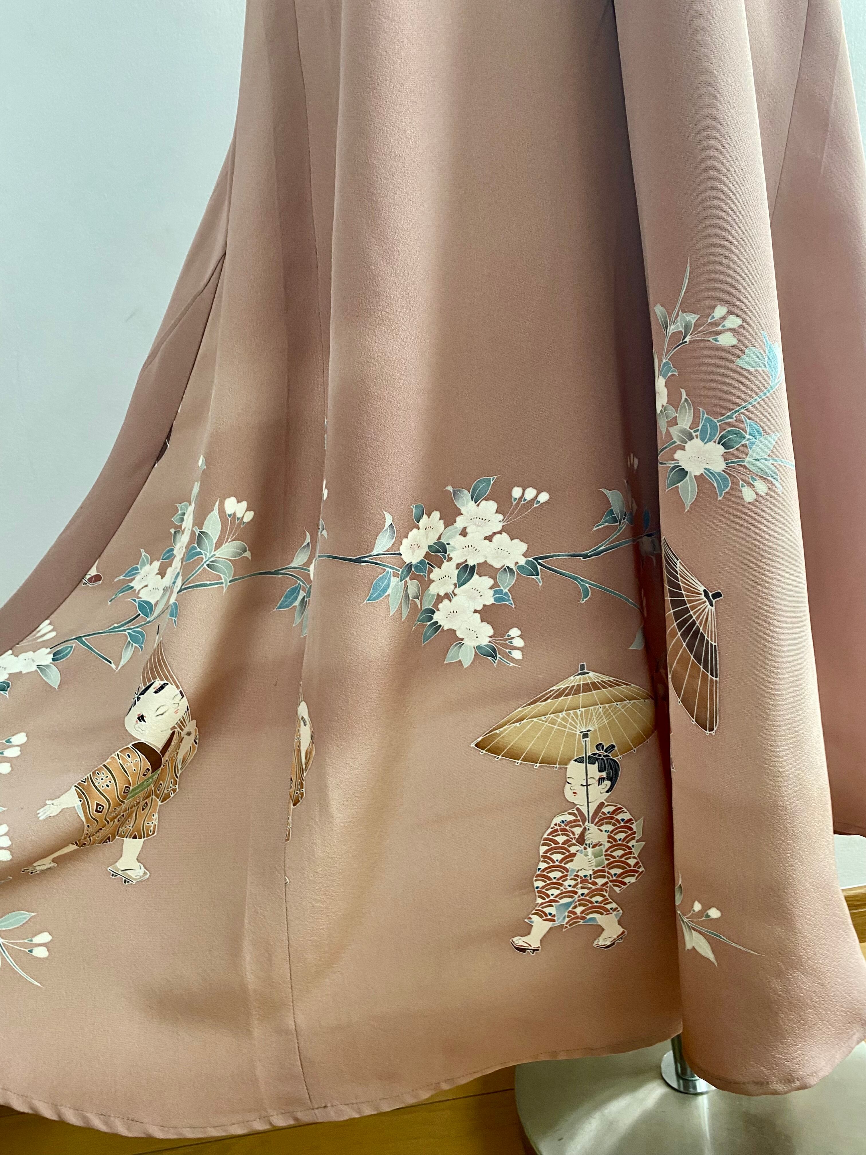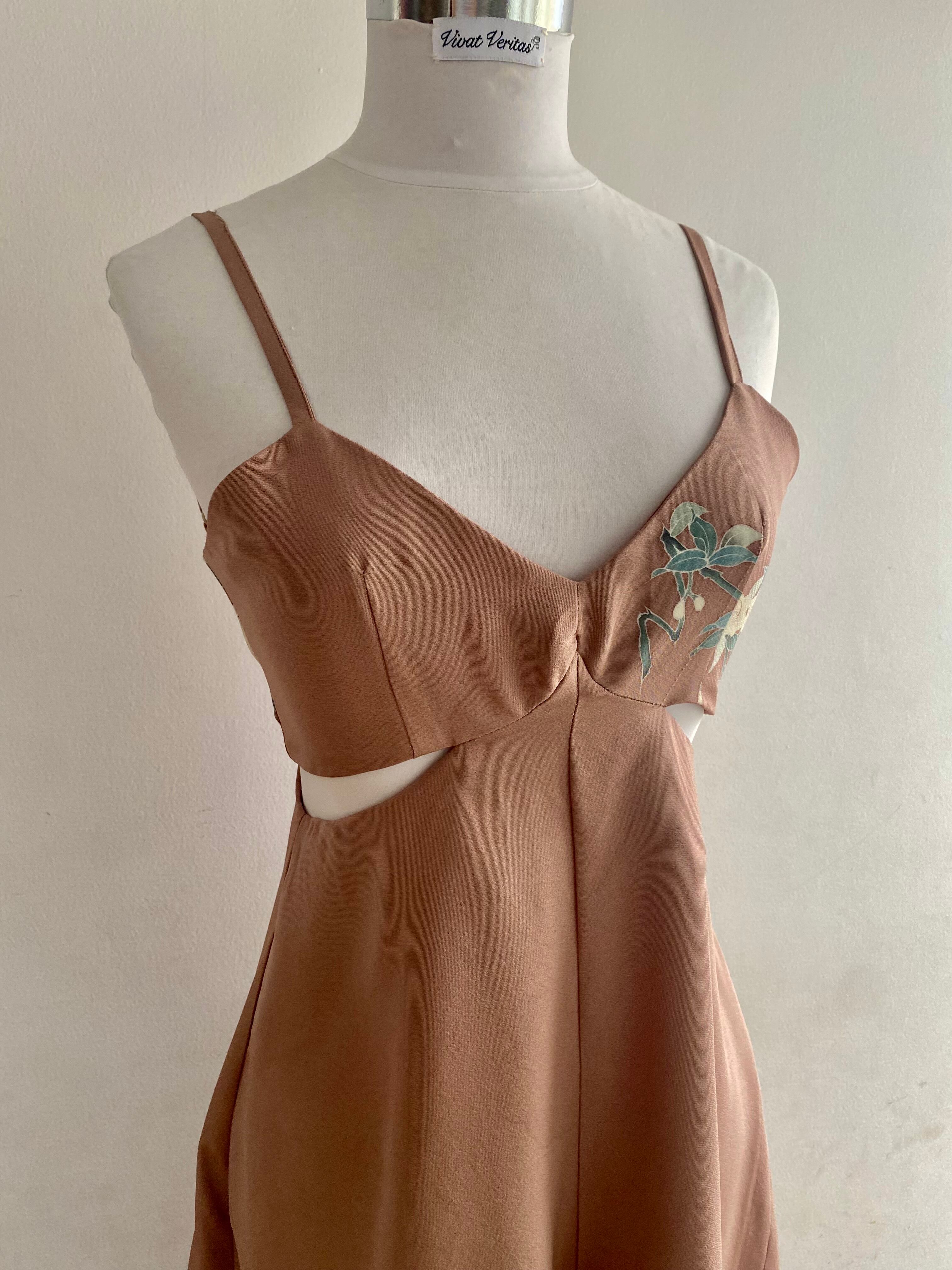 お呼ばれドレス、リボン、パーティー、日本風、Japanese、Kimono、着物、やっこさん、モダン着物、リメイク、シンプル、膝下丈、Aライン、パステル、さわやか、ストラップ、キャミソール、ストラップ調整可能